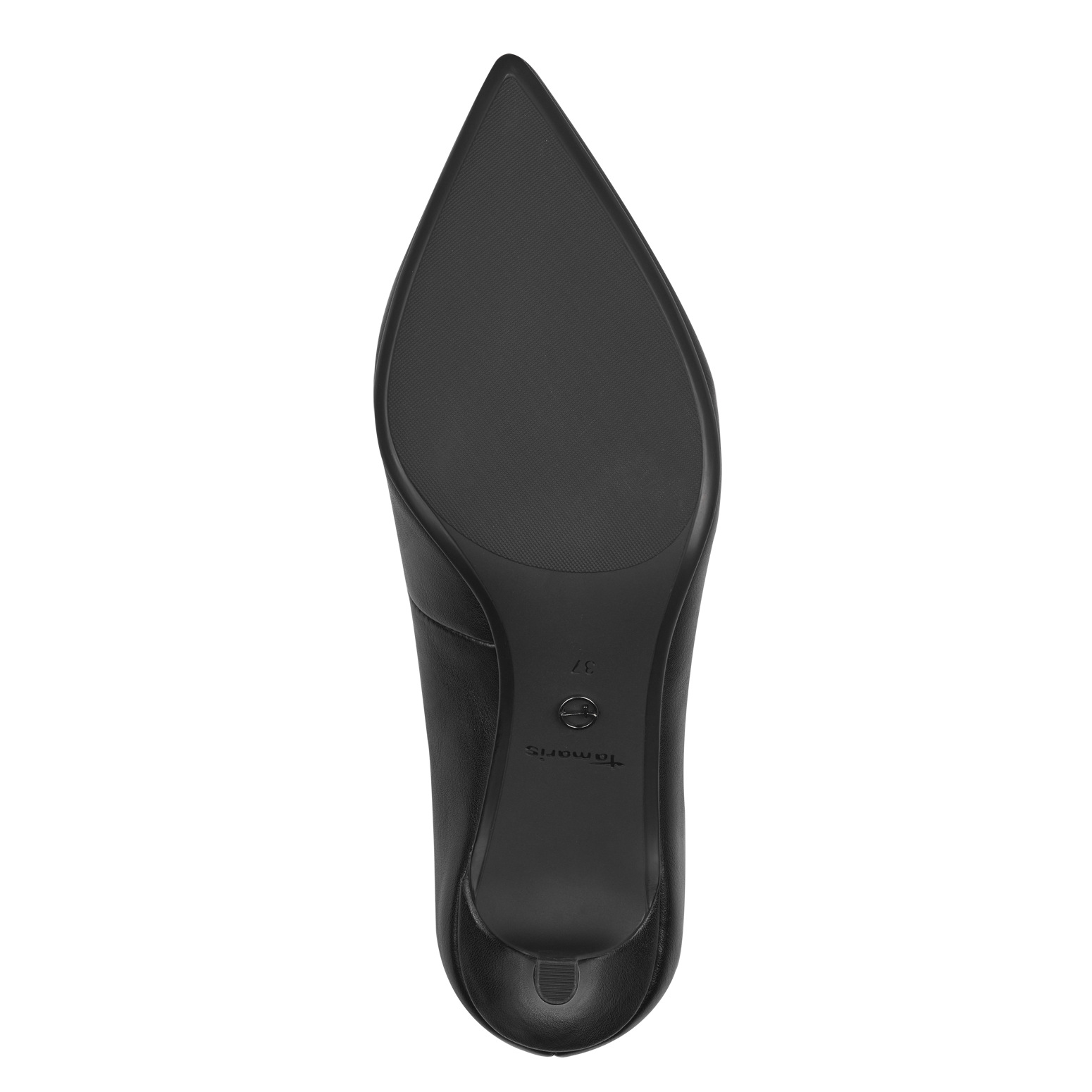 Dámské lodičky v černé barvě značky Tamaris. Svršek obuvi je vyroben ze syntetické kůže. Lodičky jsou vybavené vyměkčenou stélkou pro pohodlný došlap. Speciální systém vyměkčení podpatků Antishock zaručí 50% odpružení, čímž šetříte klouby i páteř.