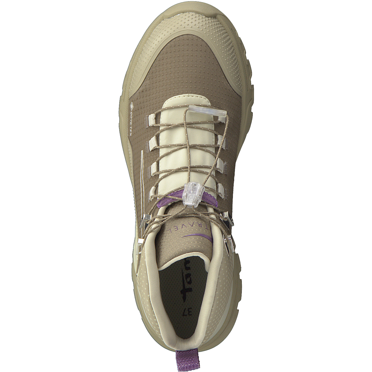 Dámské tenisky z outdoorové řady značky Tamaris. Obuv s textilním svrškem je vybavená vyndavací stélkou a membránou GORE-TEX. Zesílená ochrana palců s technologií 2PROTECT je viditelně integrovaná do špičky boty a chrání nejen chodidlo, ale také svrchní materiál obuvi před čelními nárazy. Zesílená oblast paty v maximální možné míře stabilizuje chodidlo na nerovném terénu a poskytuje mu optimální podporu při každé outdoorové aktivitě. Podešev zajišťuje optimální přilnavost na každém povrchu.