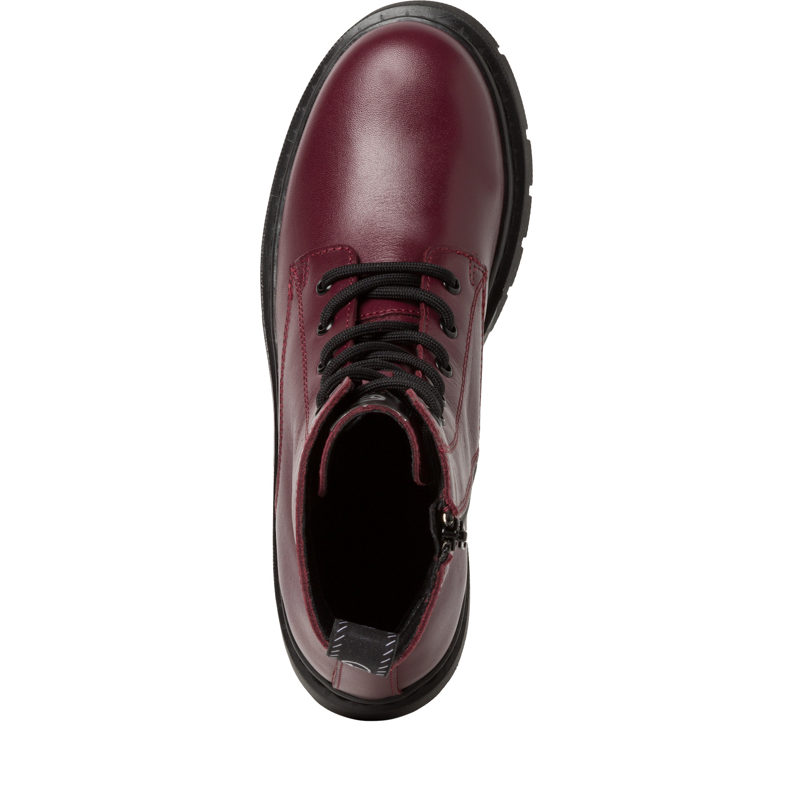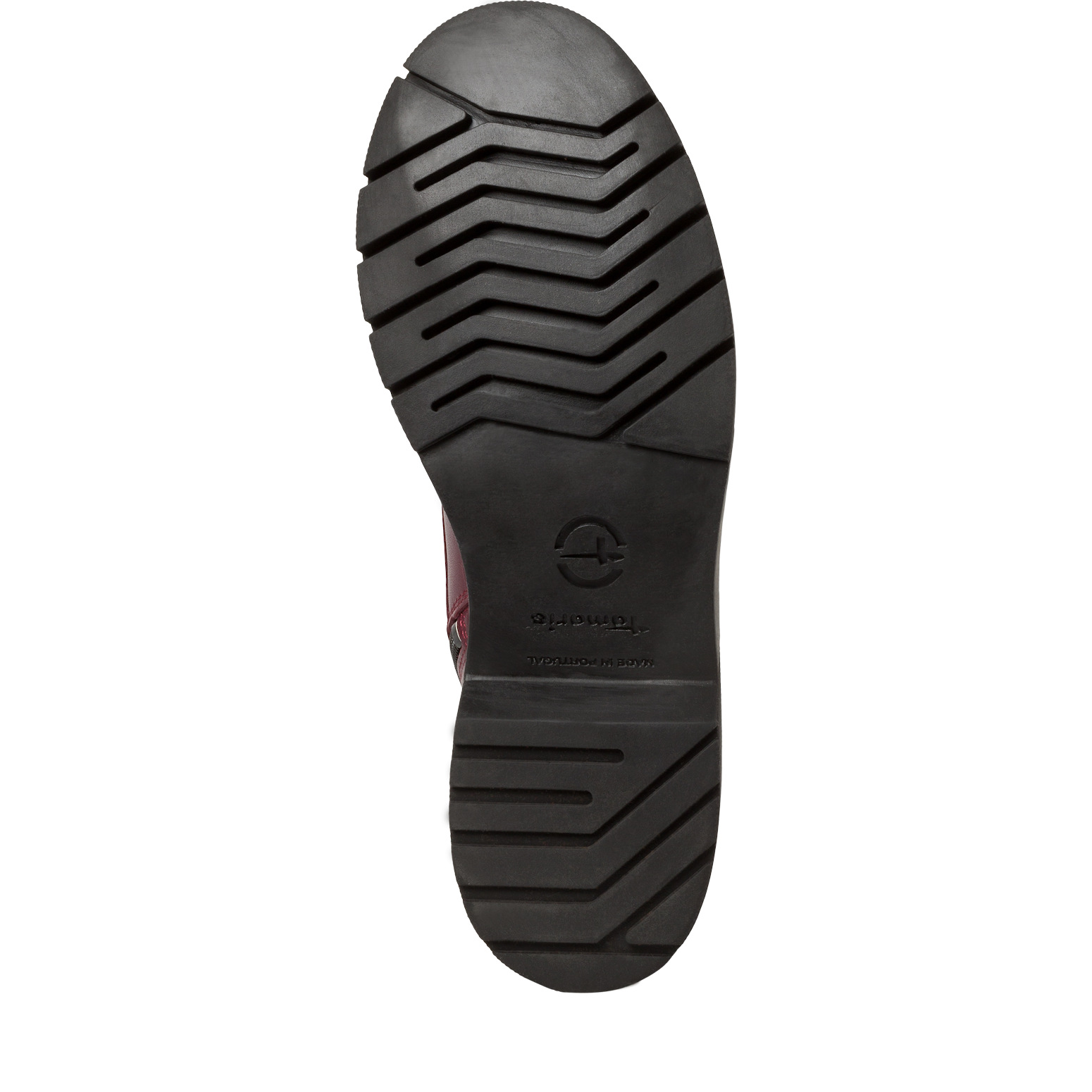 Dámské polokozačky ve vínové barvě značky Tamaris. Svrchním materiálem je kůže. Šněrováním lze obuv upravit dle Vašich požadavků. Obuv se snadno nazouvá díky bočnímu zipu. Podešev je vyrobena z vysoce kvalitního materiálu.