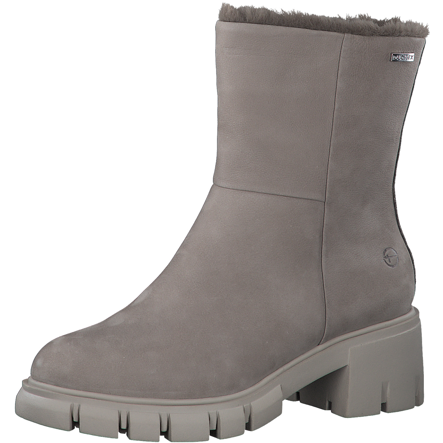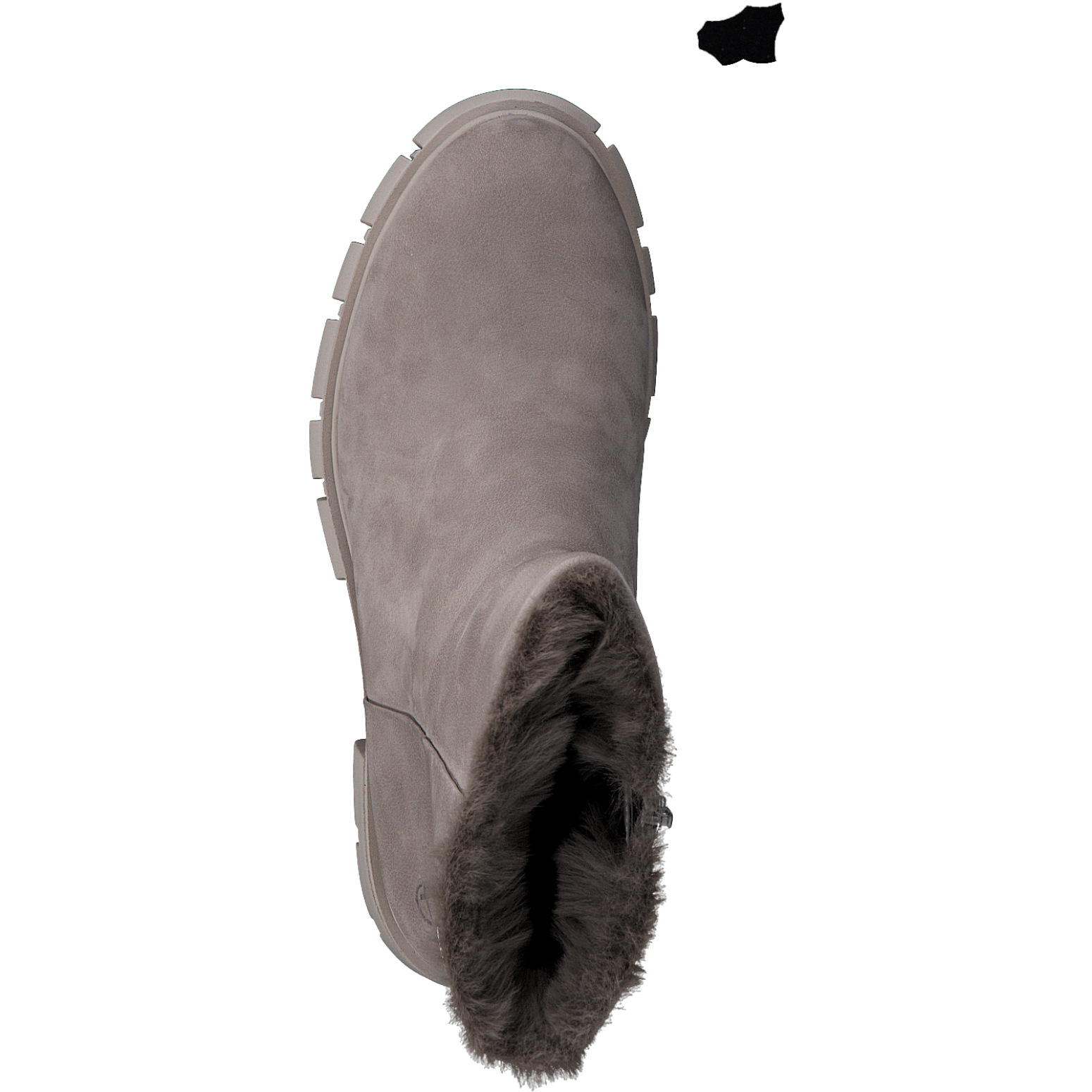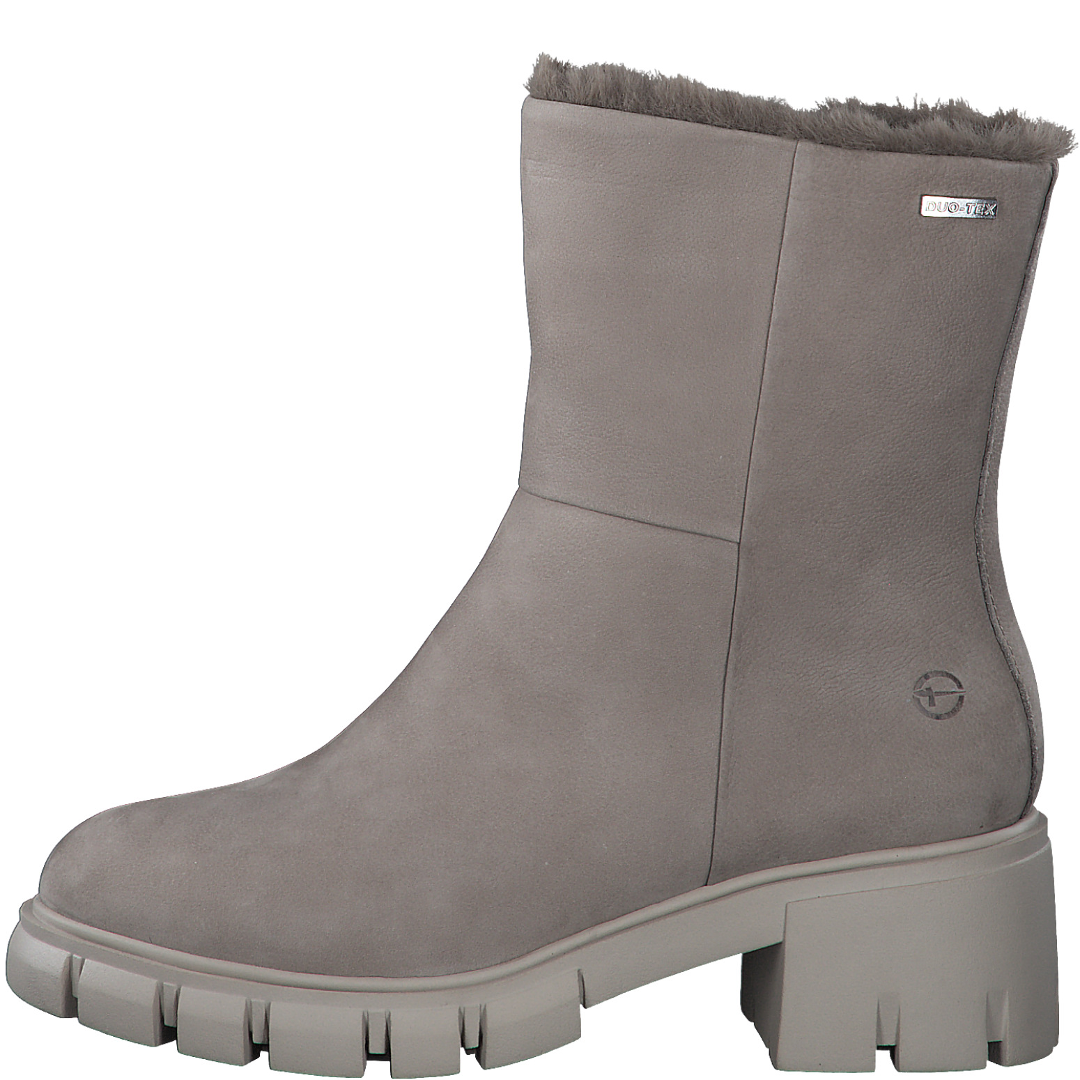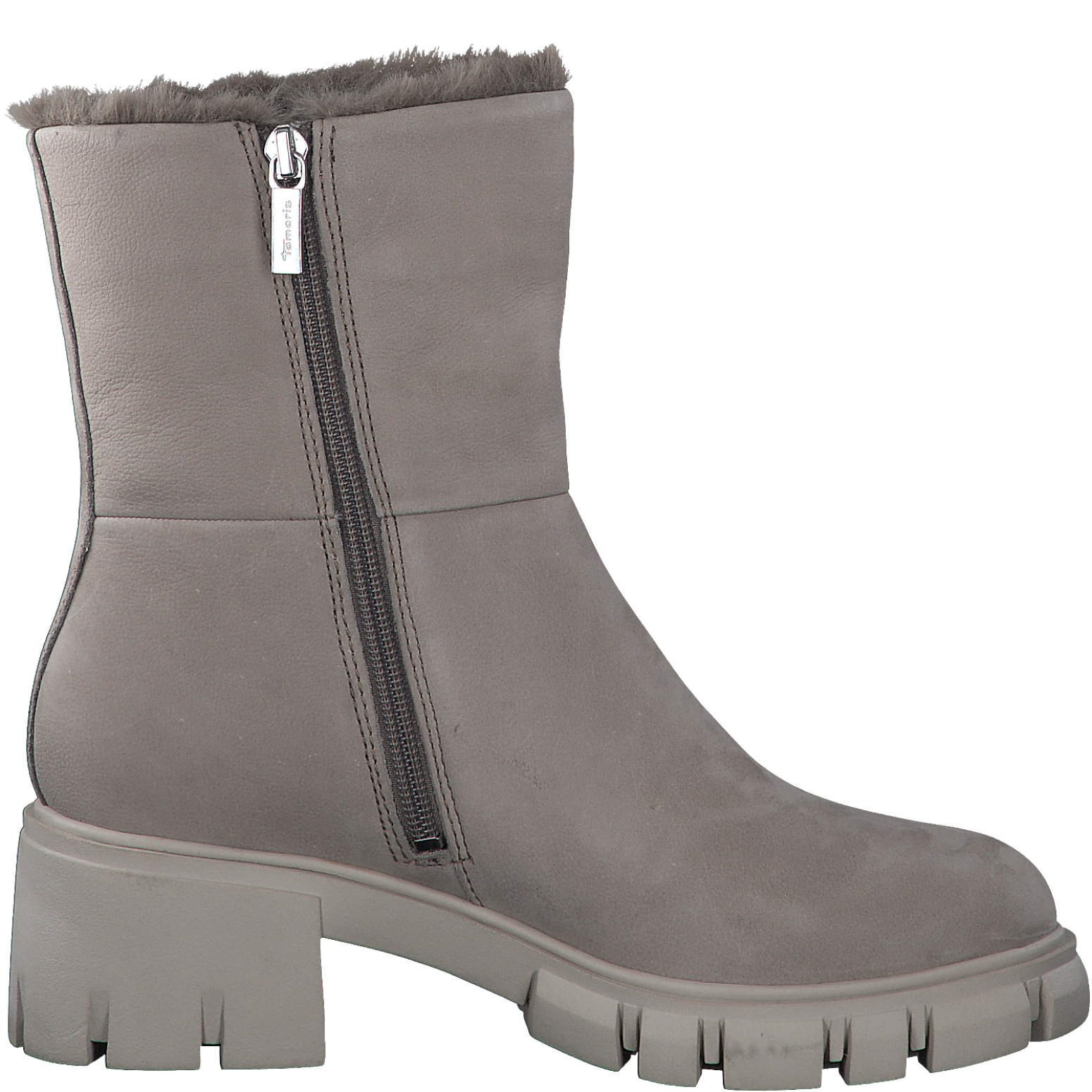 Dámské polokozačky v béžové barvě značky TAMARIS. Svrchním materiálem je kůže. Z boku obuvi zip pro snadnější obouvání. Obuv je zateplená podšívkou.