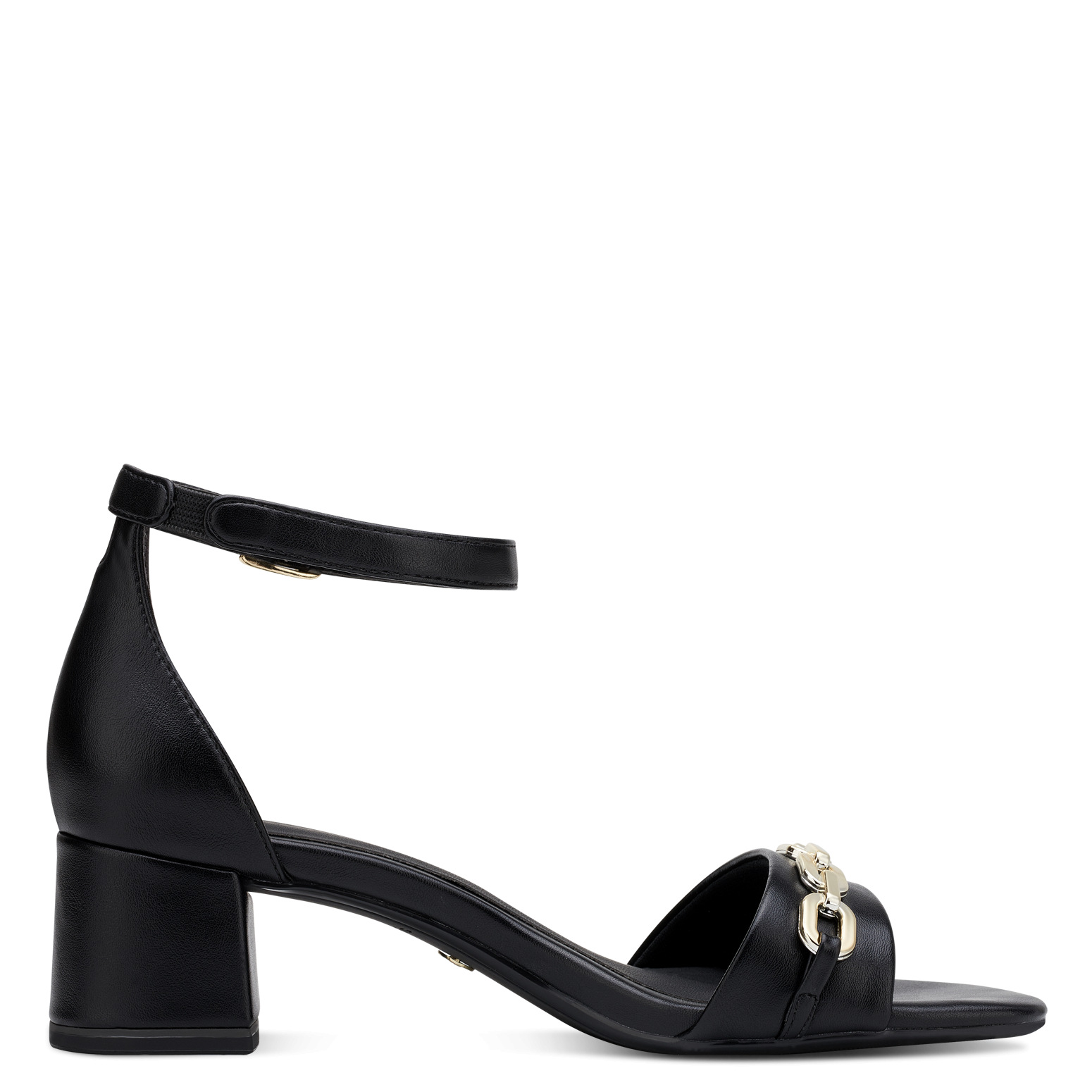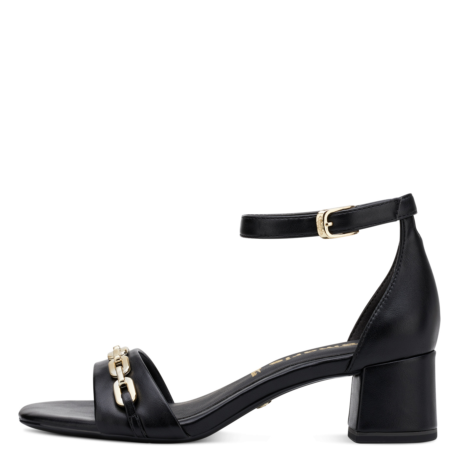 Dámské elegantní černé sandály Tamaris .Ozdobná zlatá spona dodáva obuvi ten správný šmrnc. Paměťová stélka poskytuje chodidlům vysoký komfort při nošení. Podešev je vyrobená z kvalitního syntetického materiálu. Široký podpatek zajišťuje perfektní stabilitu.