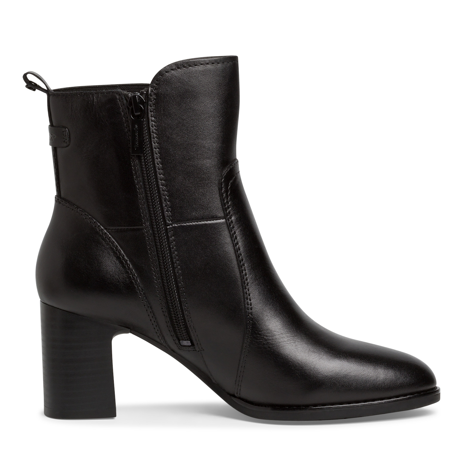 Dámské černé polokozačky TAMARIS COMFORT FIT. Svrchním materiálem je kůže. Z boku obuvi zip pro snadnější obouvání. Paměťová stélka se dobře přizpůsobí tvaru vaší nohy, což přispívá k pocitu pohodlného nošení.
